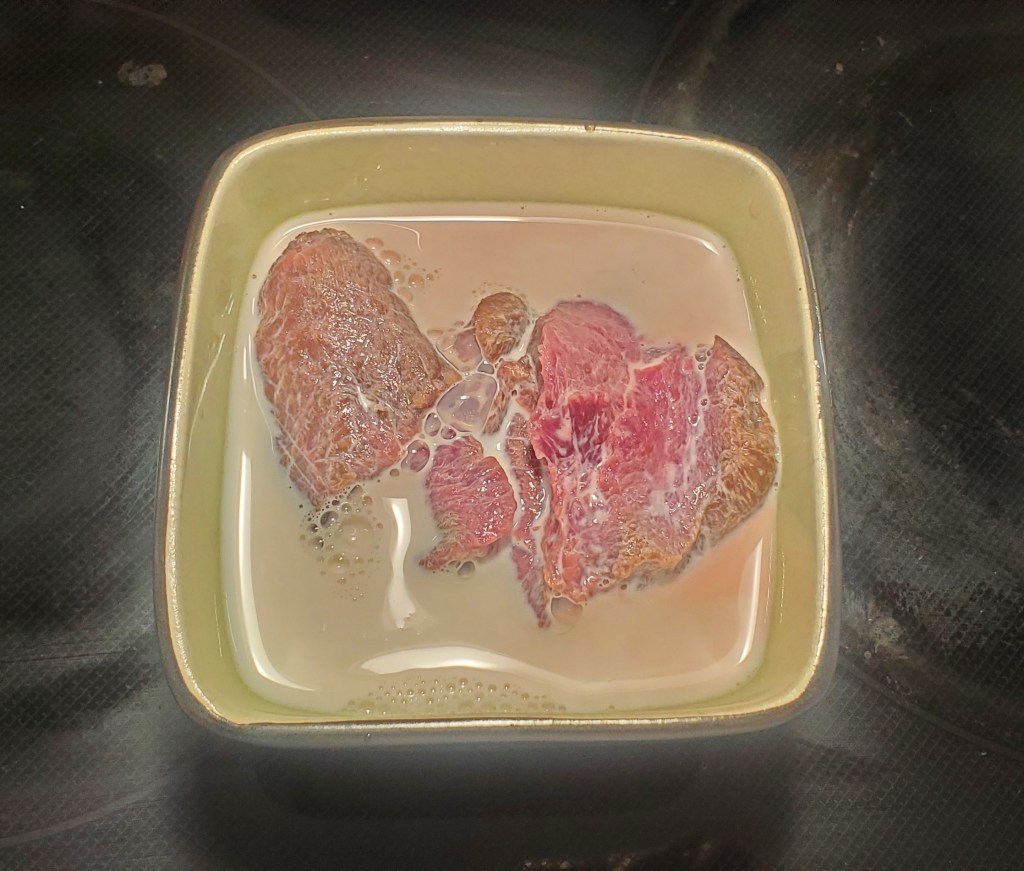 Prior to grilling, soak the venison steaks throughout the day or overnight in buttermilk. This will help “Bleed the meat” which is a large source of the gamey flavor.
